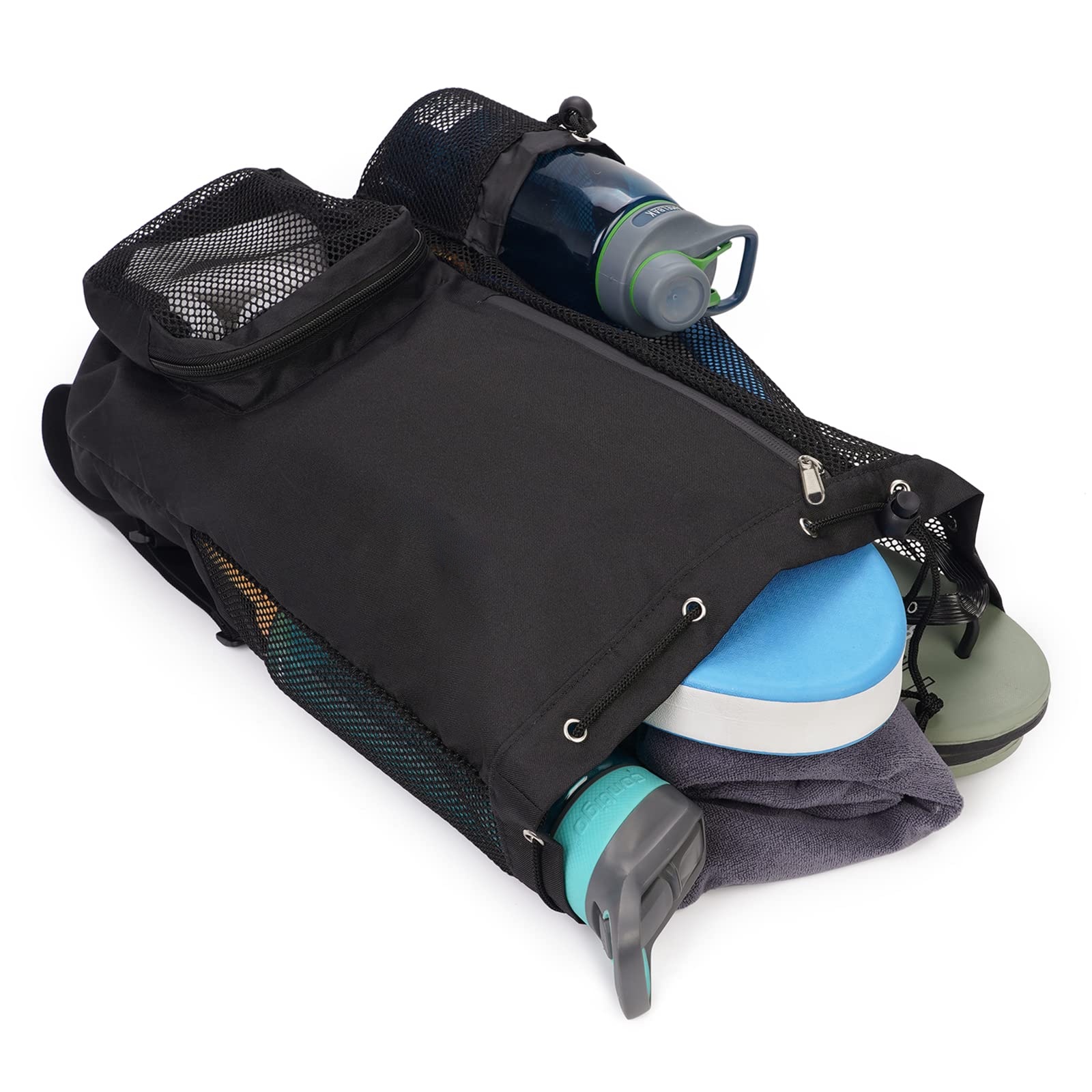 Mesh Drawstring Swim Backpack with Wet Pocket